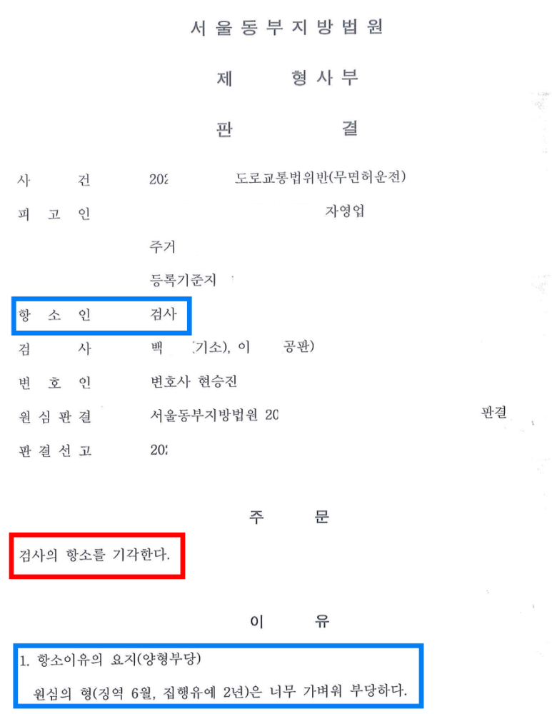 ※ 한편 검사는 제1심 판결에 불복하여 의뢰인에게 실형이 선고되어야 한다는 이유로 항소를 하였으나 변호인은 항소심에서도 검사의 주장을 효과적으로 반박하였고 항소심은 검사의 항소를 기각하는 판결을 하여 제1심 판결이 그대로 확정되었습니다.