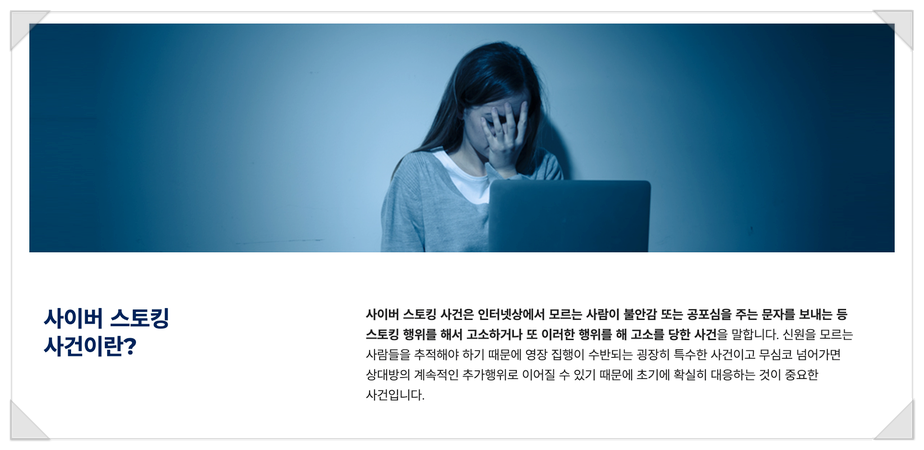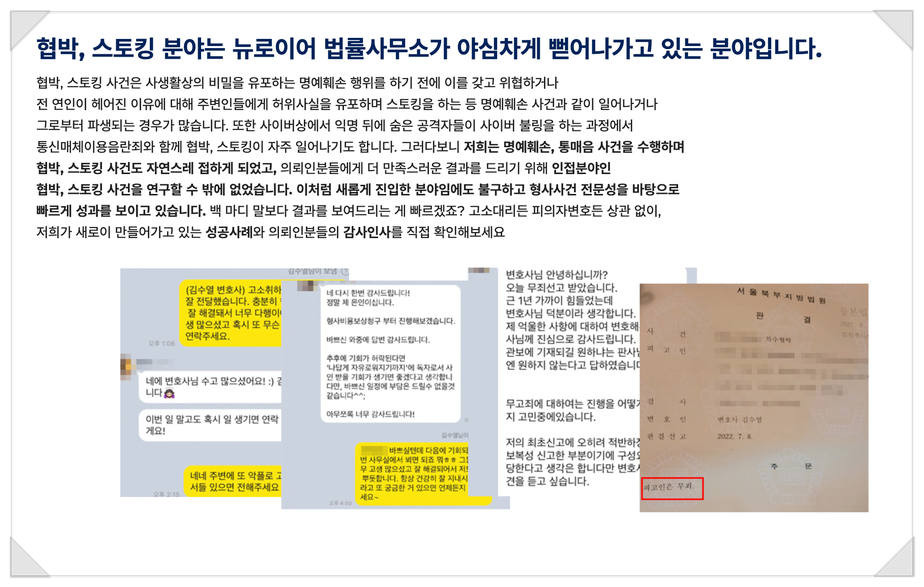 실제로 이러한 이유로 처음 스토킹, 협박 문제로 저희를 찾아주셨으나