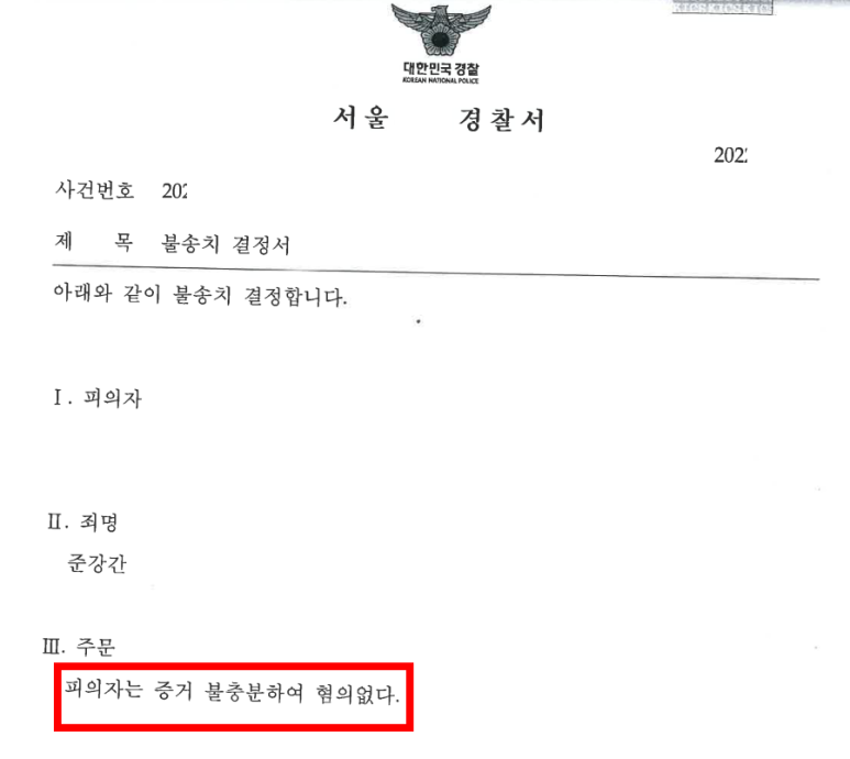 수사기관에서는 이와 같은 점들을 적극 반영하여 수사를 진행한 결과, 고소인이 심신상실 또는 항거불능 상태에 있었다고 보기 어렵고, 의뢰인에게 이를 이용하려는 고의도 존재할 수 없다는 점을 근거로 의뢰인에게 혐의를 인정할 수 없다고 보아 불송치 (혐의없음) 결정을 하였습니다.