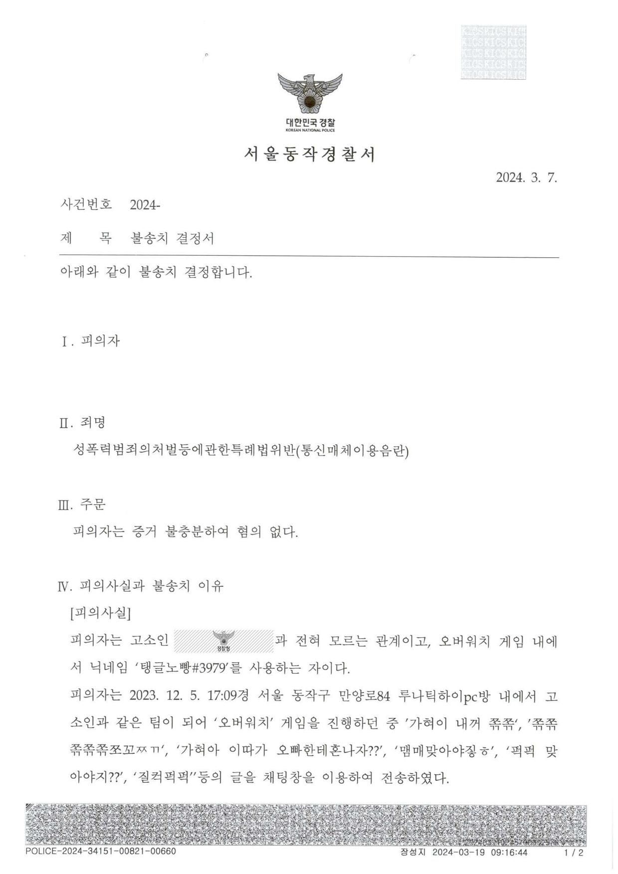 ****게임이든 랜덤채팅이든 통매음 불송치, 무혐의, 무죄 받는 것이 너무 쉽기 때문에 딱히 해결사례라고 자랑하기도 민망 합니다만, 상담을 요청하는 분들께서 해결사례 좀 올려 달라고 하시어, 3개월여 전부터 생각나는대로 해결사례를 열심히 올리고 있습니다. 자신이 발언하였던 워딩과 비슷한 제가 과거에 자세히 작성해놓은 해결사례를 찾아보시면 도움이 되실 것 입니다.****