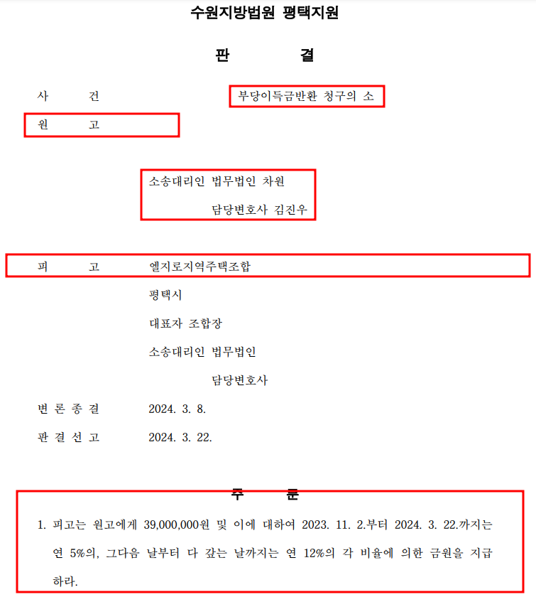 2024. 3. 22. 엘지로지역주택조합을 상대로 추가된 승소 판결을 공유합니다!