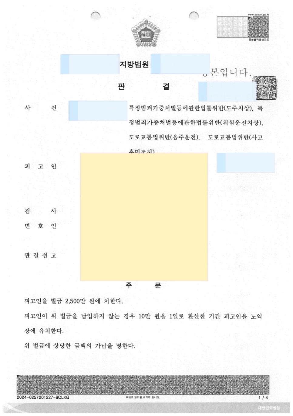 나아가 피해자에게 인적사항을 남기지 않은채 현장을 벗어나 특정범죄가중처벌등에관한법률위반(위험운전치상), 특정범죄가중처벌등에관한법률위반(도주치상), 도로교통법위반(사고후미조치), 도로교통법위반(음주운전)으로 기소된 사건입니다.