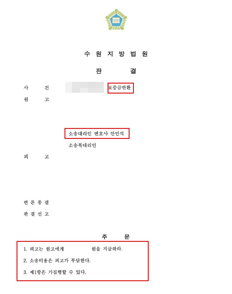 전세계약 직후 임대인이 변경된 사실을 계약 기간 중 인지한 후 저, 안민석 변호사의 조력으로 소송을 진행해 보증금 전액 반환에 성공한 사례인데요.