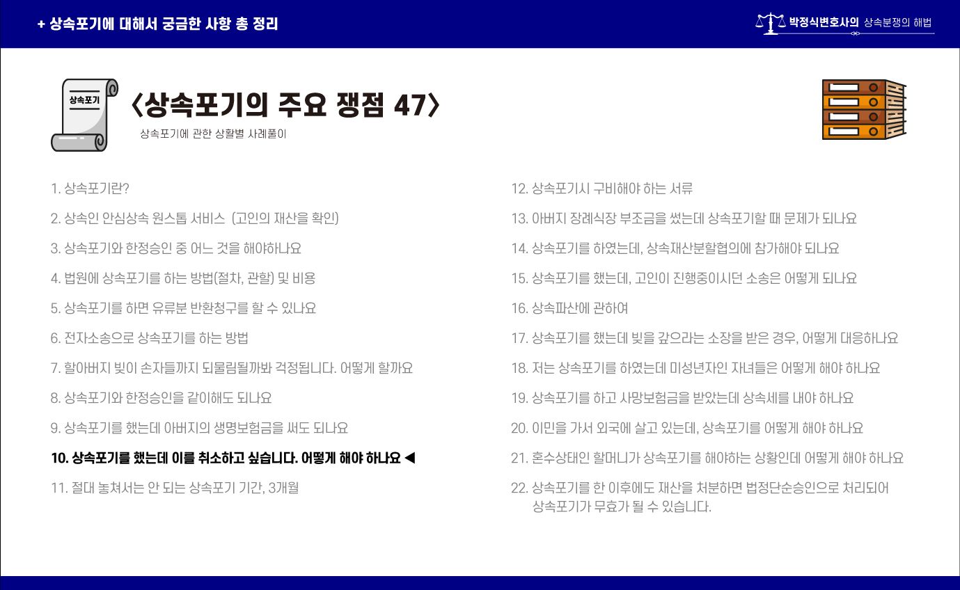상속포기 신고절차는 비교적 간단하지만, 이를 취소하는 것은 까다롭고 어려운 일입니다.