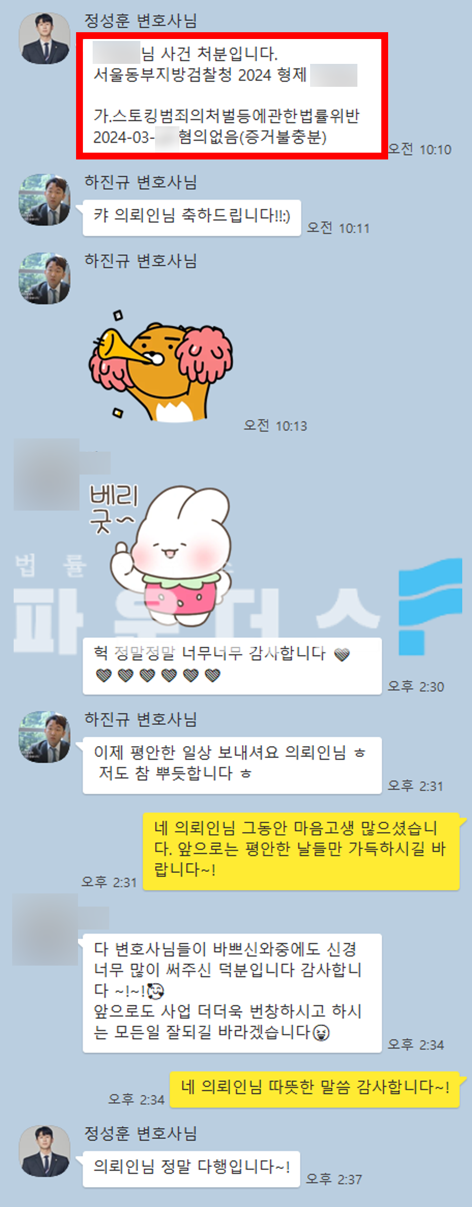 그 결과 의뢰인은 연인 스토킹 사건에 있어 혐의없음(증거불충분)의 결과로 억울한 상황에서 벗어날 수 있었습니다.