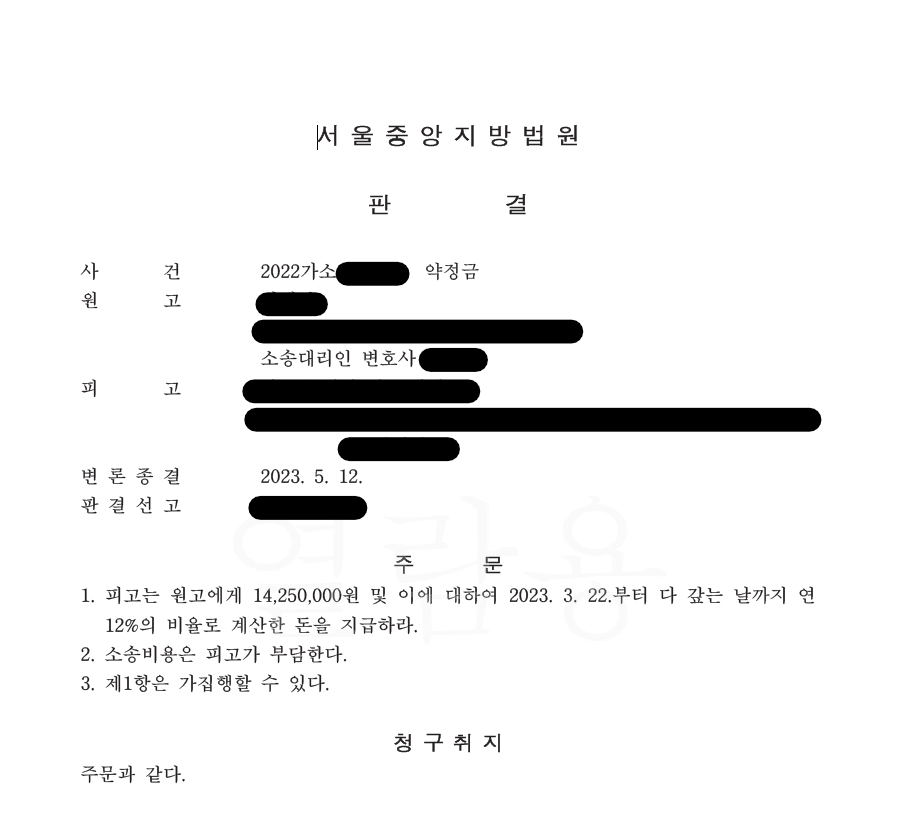 의뢰인은 피고와 구두로 노무 제공 및 그에 대한 반대급부인 약정금 지급 협의를 완료하였습니다. 하지만 의뢰인이 피고에 대해 노무를 제공했음에도 불구하고 피고는 명시적으로 서면계약을 체결한 사실이 없다는 점을 들면서 약정금 지급을 거부하고 있었습니다.