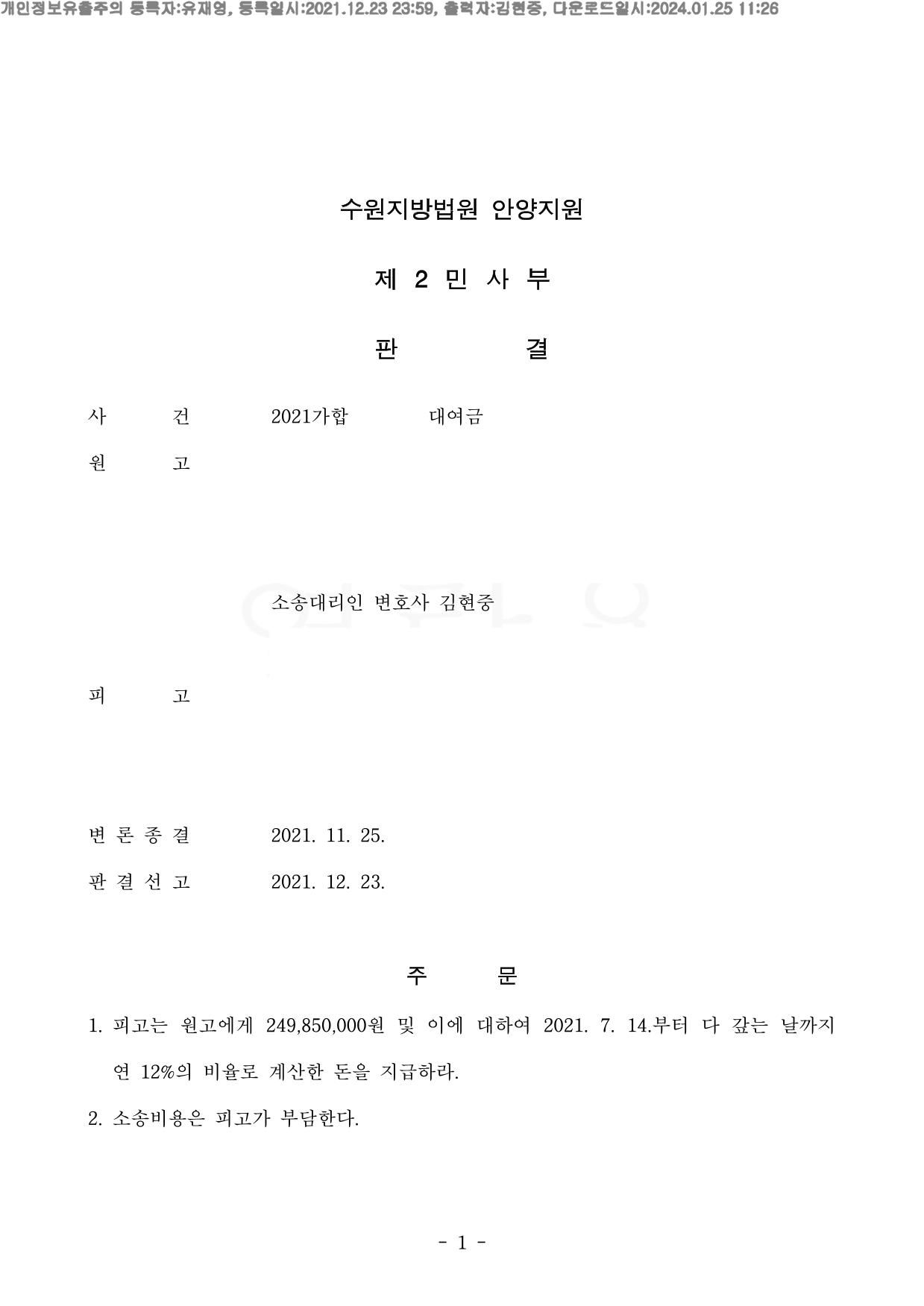 원고는 전부 승소할 수 있었습니다.