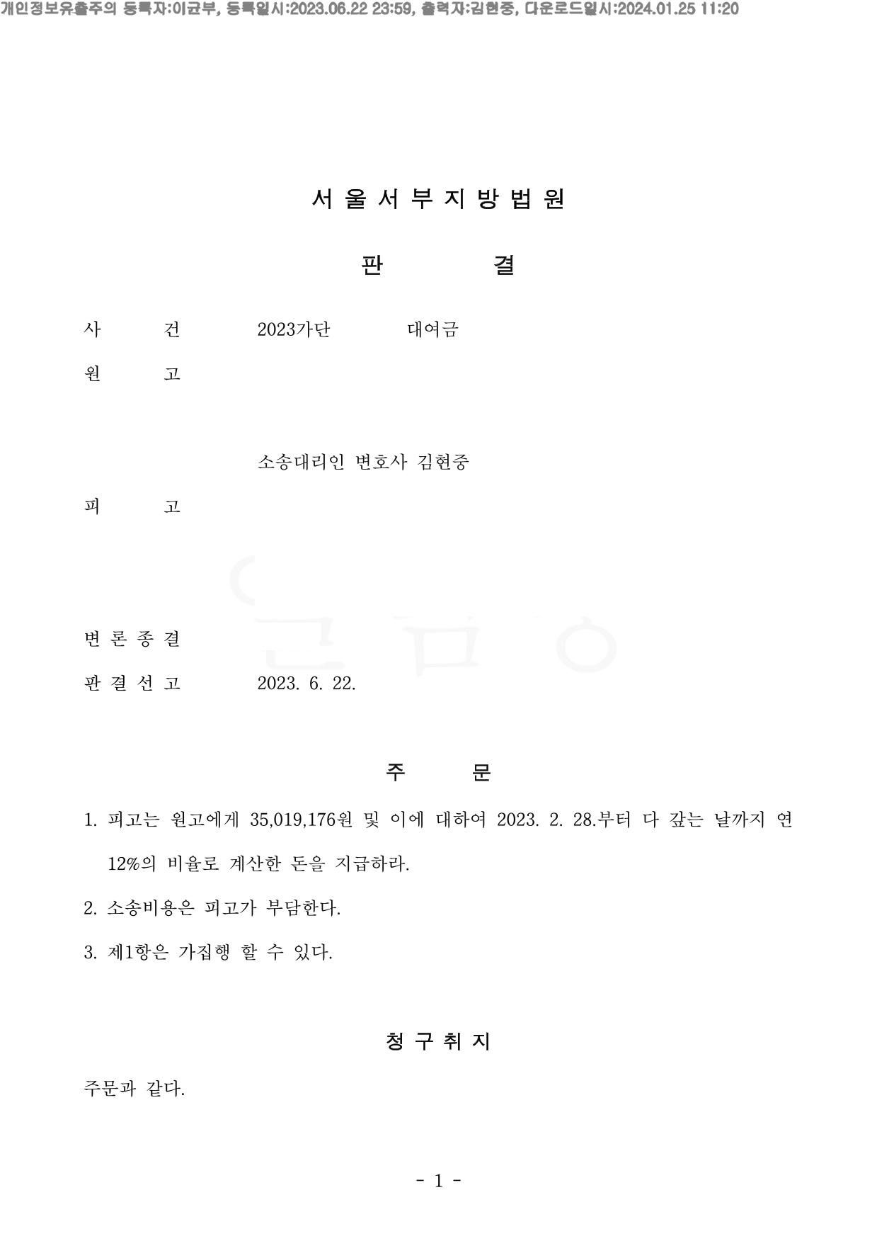 ****판결문을 보시면 아시겠지만 변호인으로서 제 이름만 들어가 있는 것을 확인하실 수 있습니다. 제가 온전히 혼자서 이끌어 낸 사례만을 저의 해결사례로 올리는 것이니 참고 바라며, 고용 변호사가 처리한 사건에서 제 이름만 들어간 사례라던 가 다른 변호사들과 함께 처리한 사건에서 제 이름이 들어갔다는 이유로 자신의 독자적인 해결사례인 것처럼 올리지 않습니다. 또한 착오가 없는 이상, 기존에 올렸던 해결사례를 일정 기간이 지난 후에 새로운 해결사례인 것처럼 재차 업로드 하지 않습니다. ****