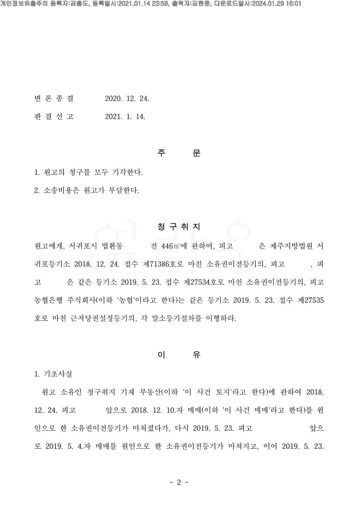이에 본 변호인의 의견대로 원고의 청구를 전부기각시켜 전부승소할 수 있었습니다.