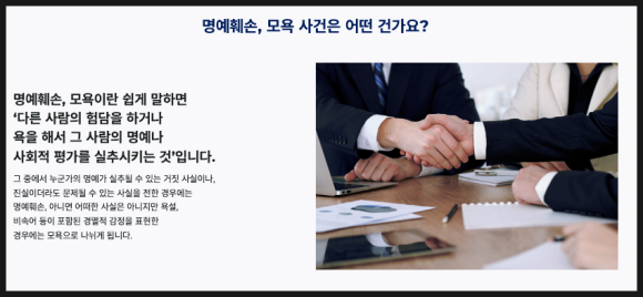 저희는 서울대, 국내 TOP5 대형 로펌 출신 변호사를 필두로 명예훼손, 모욕죄의 사이버 범죄 특화 로펌이다 보니,
