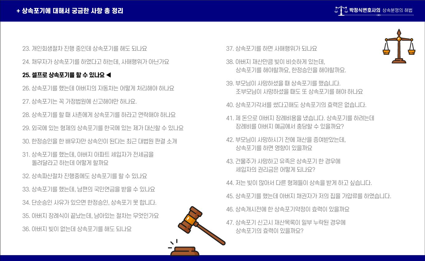 ![[상속포기 EP.25] 셀프로 상속포기를 할 수 있나요?](/_next/image?url=https%3A%2F%2Fd2ai3ajp99ywjy.cloudfront.net%2Fassets%2Fimages%2Fpost%2Fguide_title.jpg&w=3840&q=75)