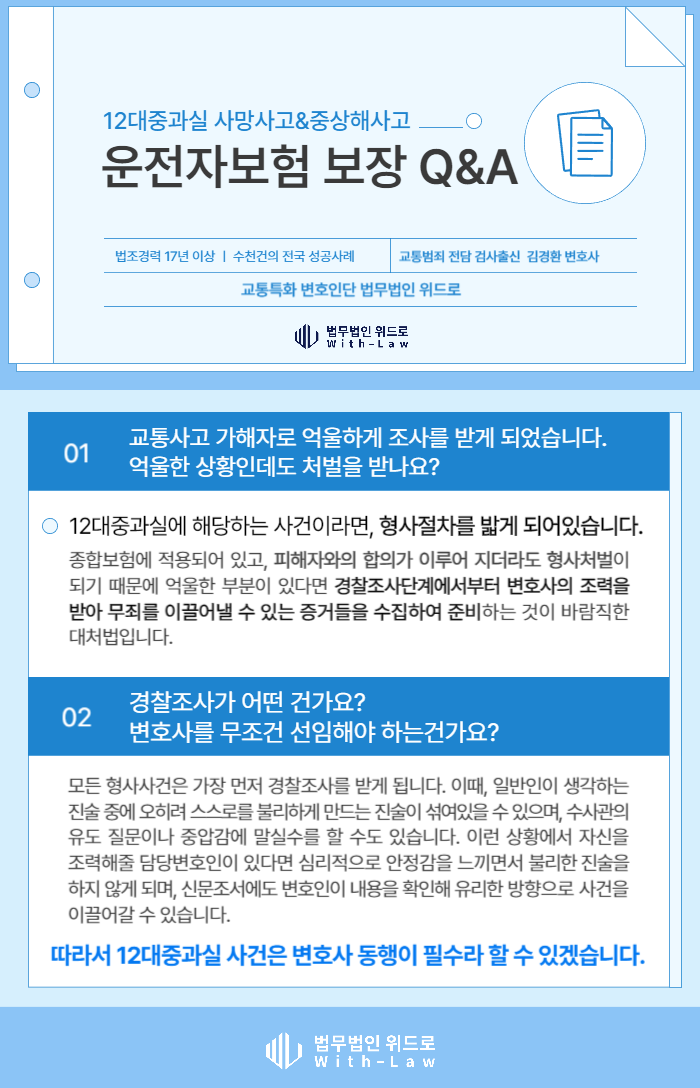 12대 중과실 사고는 형사사건으로 분류되며 형사절차를 밟게 되어있습니다.