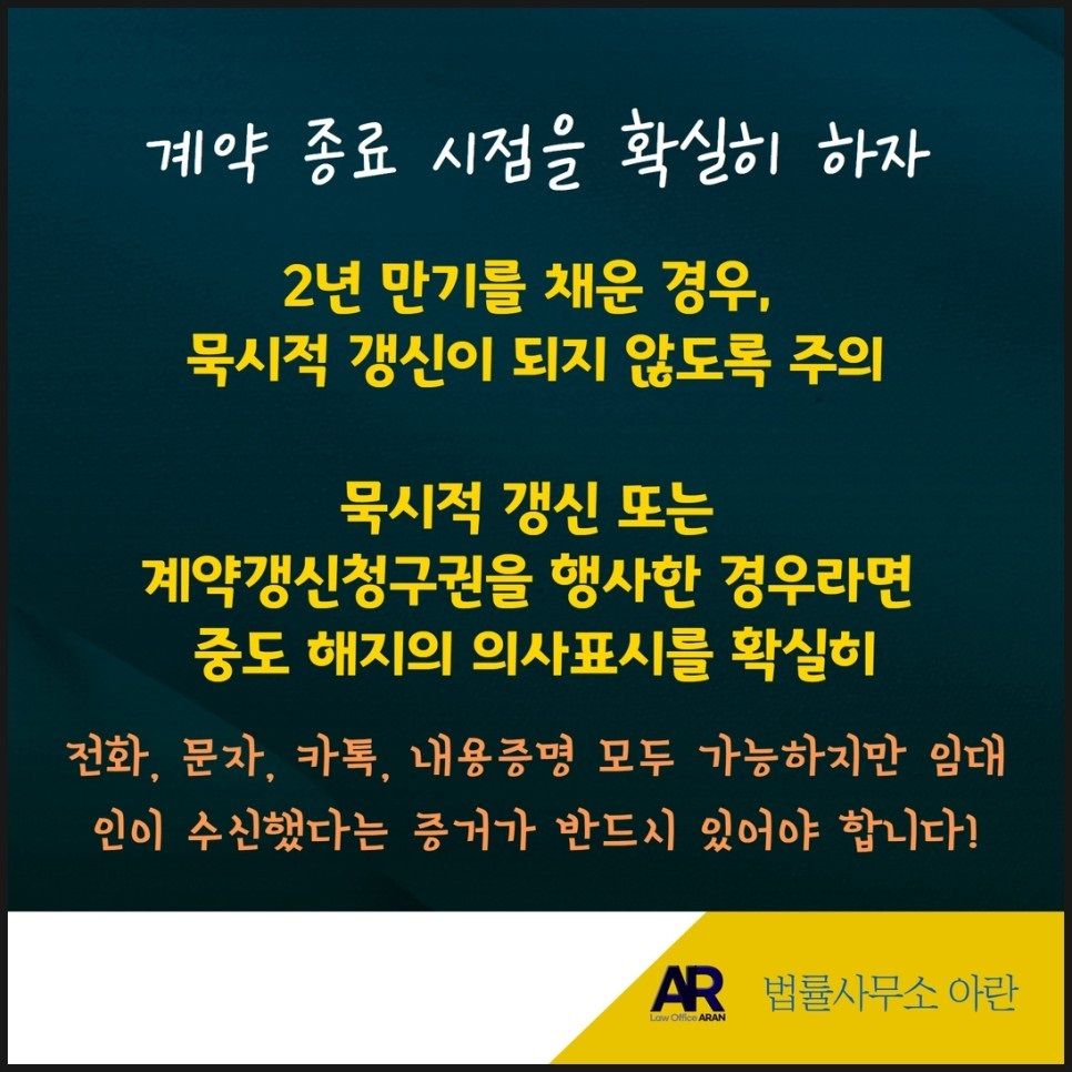 2년 만기를 채우고 계약을 종료하는 경우, 묵시적 갱신이 되지 않도록 주의하셔야 합니다.