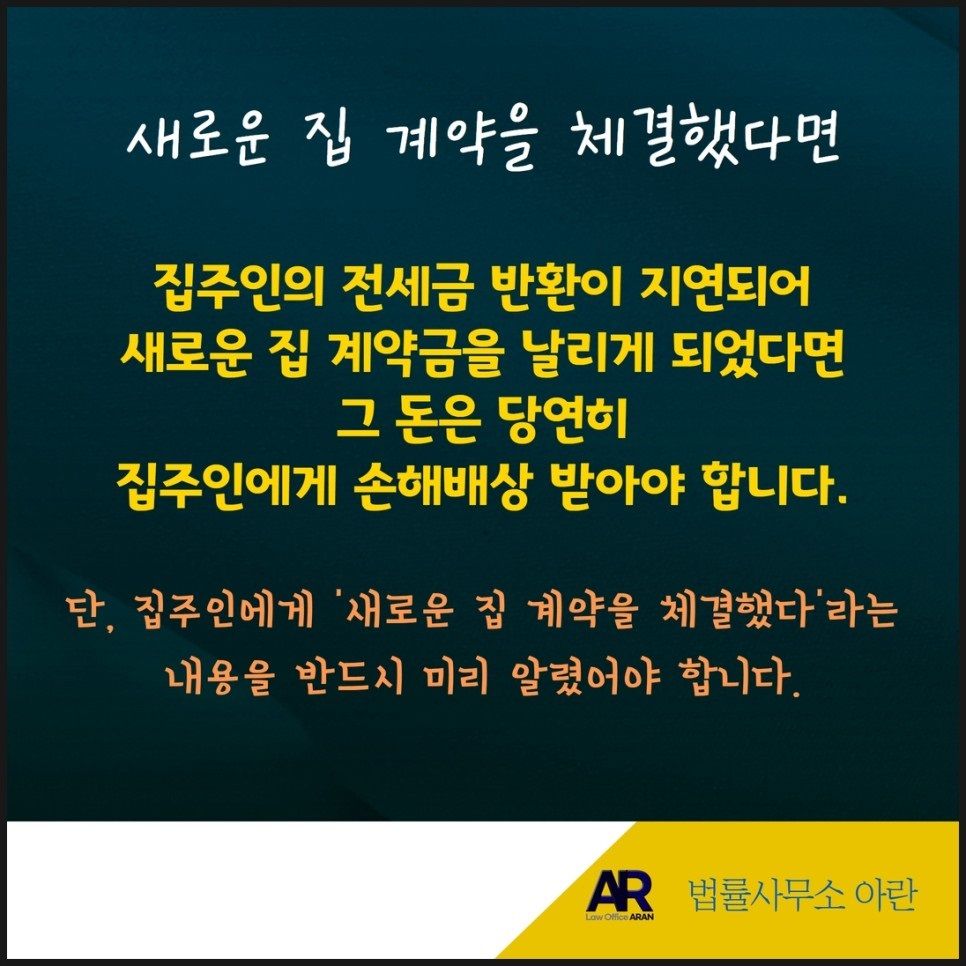 단, 이를 위해서는 기존 집주인에게 "내가 새로운 집 임대차계약을 체결했으니, 약속된 날짜에 반드시 보증금을 반환하라"라는 사실을 통지하였어야 합니다.