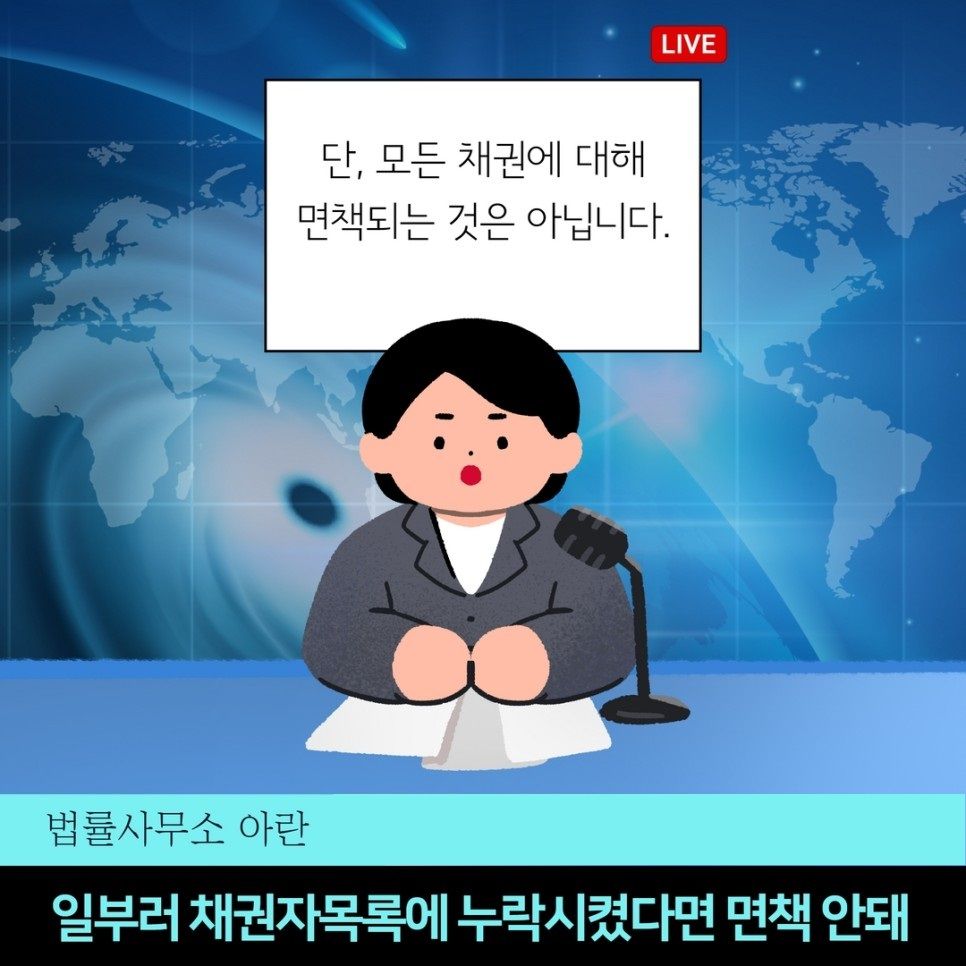 일부러 채권자 목록에서 누락시켰다면 면책되지 않습니다.