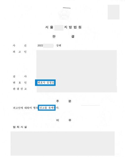변호인의 노력 끝에 선고유예로 방어할 수 있었습니다.