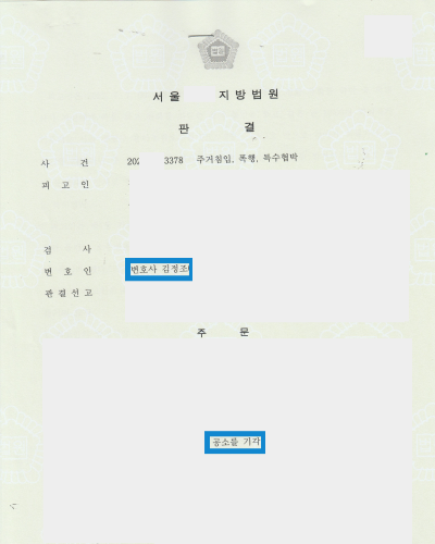 의뢰인은 ‘피해자의 주거지 안으로 들어가 피해자를 폭행하고 협박한 사실‘로 기소되었습니다.