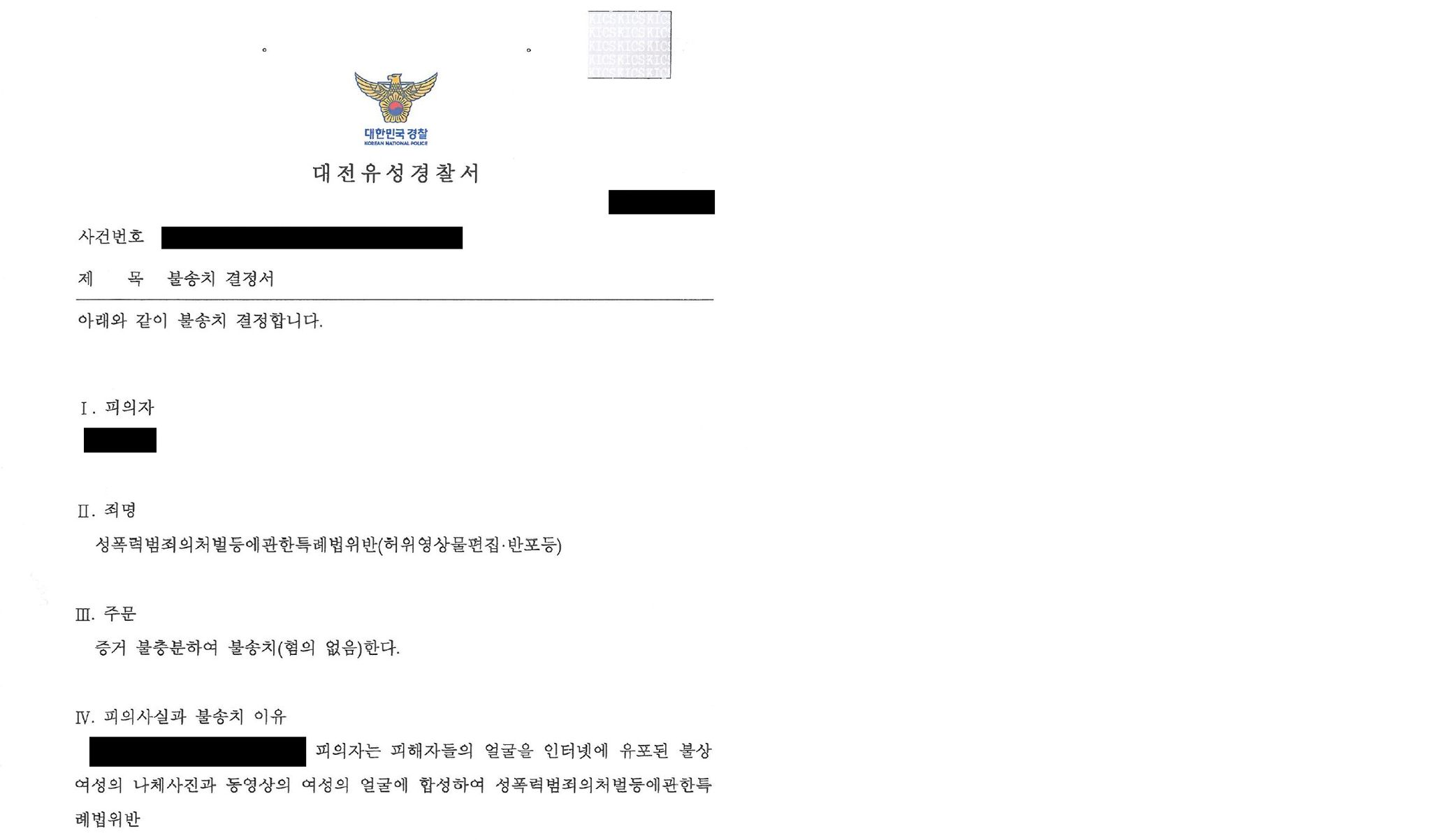 카카오톡, 인스타DM 등의 증거자료와, 정돈된 피의자 진술로 불송치(혐의없음)가 인정되었습니다.