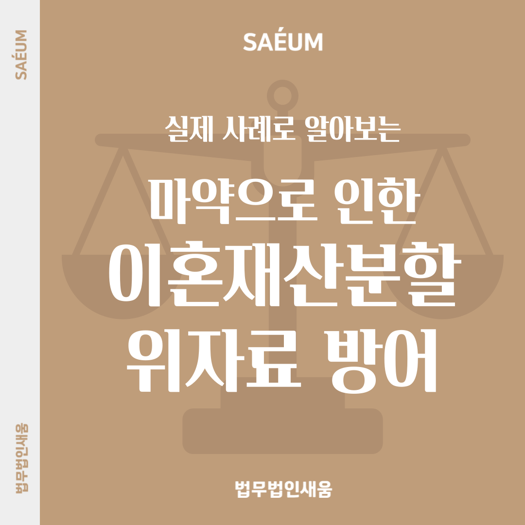 마약 등의 문제로 인해 별거이혼을 하게 된 상황에서 재산분할 및 위자료청구방어를 성공적으로 이끌어냈던 사례를 살펴보도록 하겠습니다.