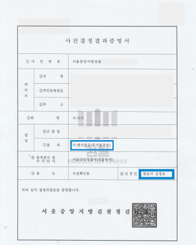 변호인의 노력 끝에, 사건이 무혐의(증거불충분)로 종결되었습니다.