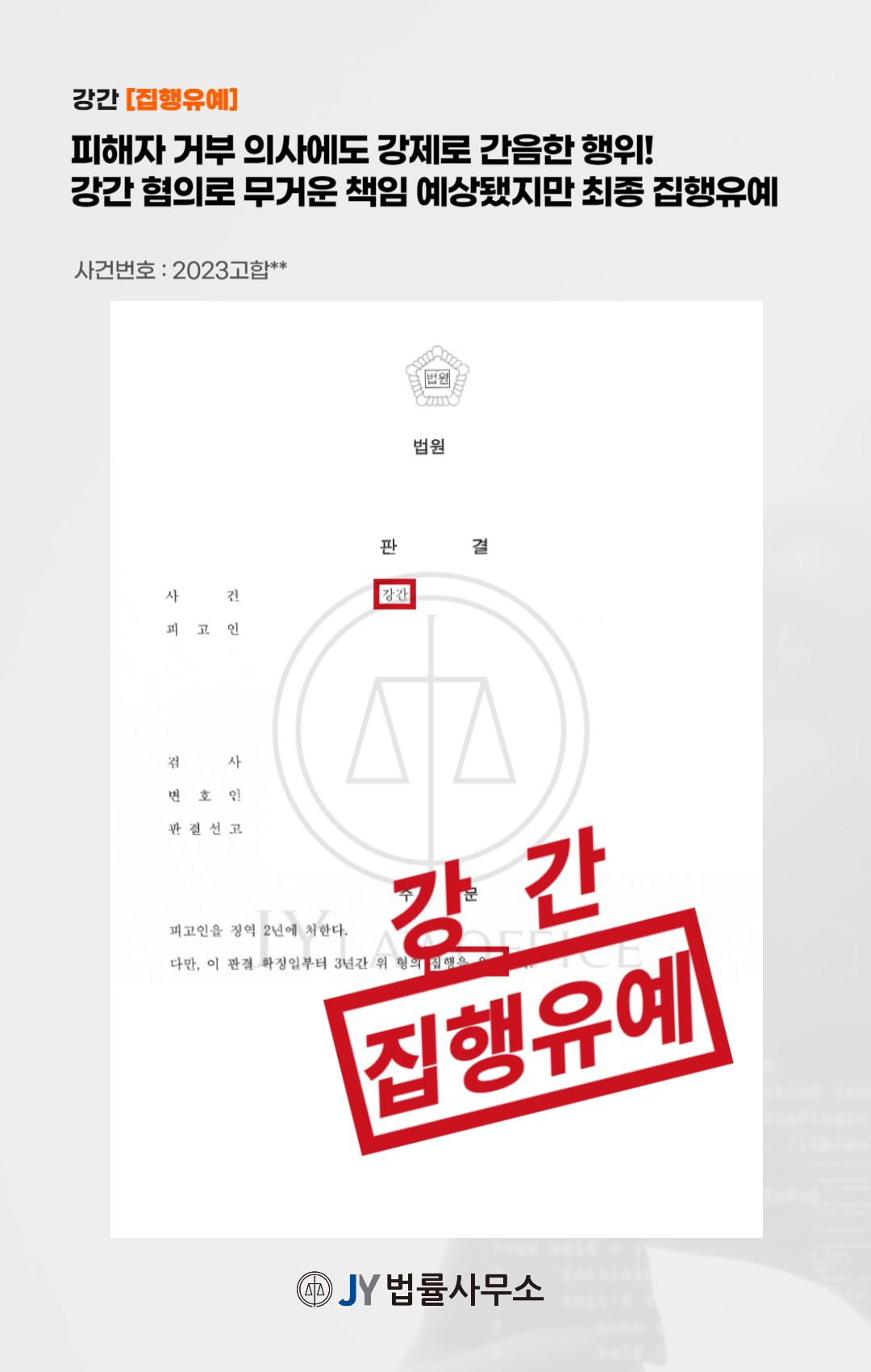 이로써 본 의뢰인은, 법원으로부터 '집행유예'의 판결을 받고 무사히 사건을 종결시킬 수 있었습니다.