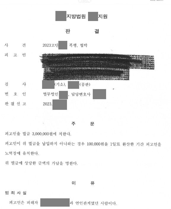 의뢰인은 해외에서 남자친구와 동거 중이었는데 말다툼을 하던 중 남자친구가 욕설을 하면서 어깨를 밀고 머리를 때리거나, 부츠를 던지거나, “안 나가면 죽인다"라고 협박을 하고, 발로 때리거나 손으로 뺨을 때리는 등 수차례 폭행 및 협박 피해를 당하였습니다. 이렇게 두 달 동안 이어진 데이트 폭행에 참지 못하고 헤어진 의뢰인은 귀국 후 저를 찾아와 폭행 및 협박으로 전 남자친구를 고소하게 되었습니다.