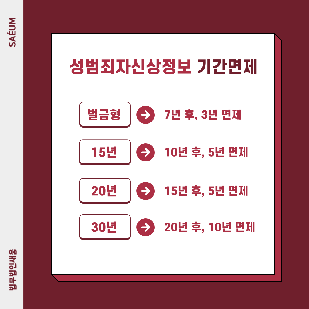 해당 처분을 받은 당사자는 일정 기간이 지나면, 남은 동안을 면해 줄 것을 법무부에 요청할 수 있습니다. 벌금형을 선고받은 경우는 7년이 지났을 때 나머지 3년을 면해 달라고 요청할 수 있으며, 3년 이하의 징역 판결을 선고받았던 때는 10년이 지났을 때 나머지 5년을, 4년 이상~10년 이하의 징역 판결을 선고받았던 때는 15년이 지났을 때 남은 기간 5년을, 징역 11년 이상의 징역 판결을 받았던 때는 20년이 지났을 때 나머지 10년을 면해 달라고 요청할 수 있는 것입니다.
