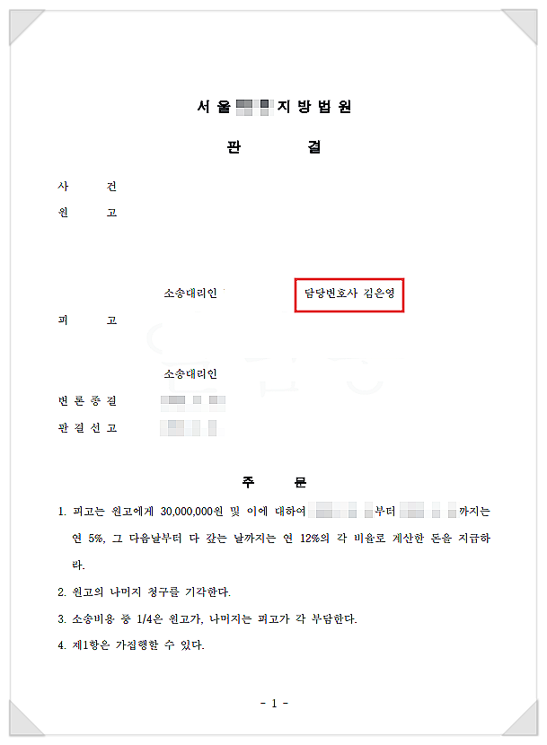 처음에 법원은 혼인기간이 짧고, 자녀가 없다며 1,800만 원의 화해권고 결정을 하였습니다. 김은영 변호사는 이 결정에 이의를 제기하면서 '상간자의 반성하지 않는 태도, 상간소송이 제기된 이후에도 남편과 계속 불륜관계를 유지했다는 점'을 강력하게 어필했습니다. 그 결과, 법원은 소송 중 보인 피고의 태도를 고려하여 위자료로 3천만 원을 인정하였습니다.