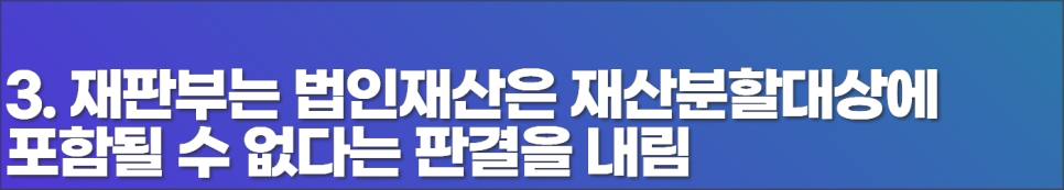 3. 재판부는 법인재산은 재산분할대상에 포함될 수 없다는 판결을 내림