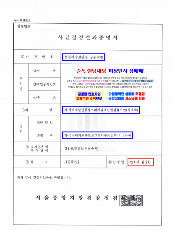 이를 인정하여 아청법 성매수가 아닌 일반 성매매로 기소유예 처분을 하였습니다.
