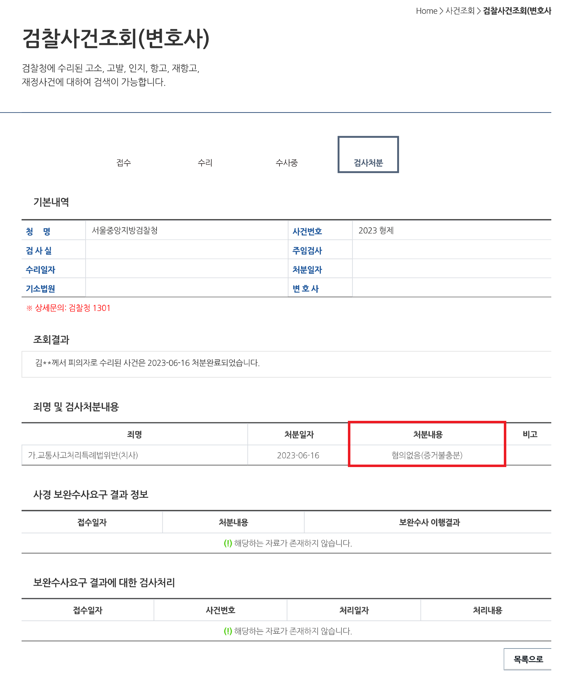 4. 최종 결과 : 검사 불기소처분(무혐의)