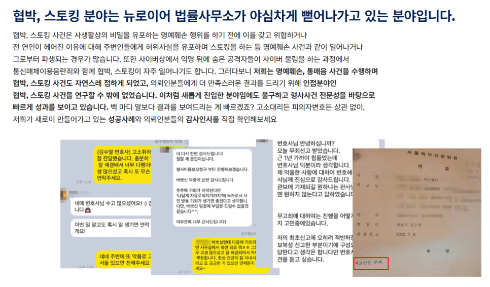 ![[형사/기타] 불안감 및 반복성 부정한 무혐의 사례 #스토킹고소](/_next/image?url=https%3A%2F%2Fd2ai3ajp99ywjy.cloudfront.net%2Fuploads%2Ftitleimage%2Foriginal%2F5c74fa6989f37c09d00babd8-original.jpg&w=3840&q=75)