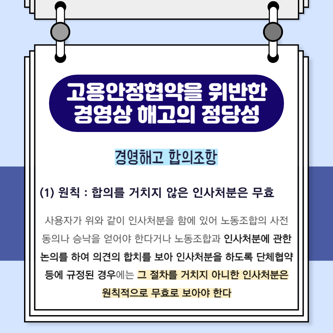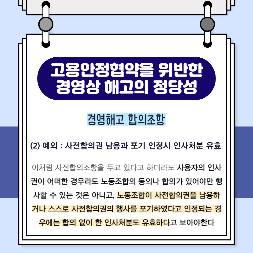 [ 고용안정협약을 위반한 경영상 해고의 정당성 ]