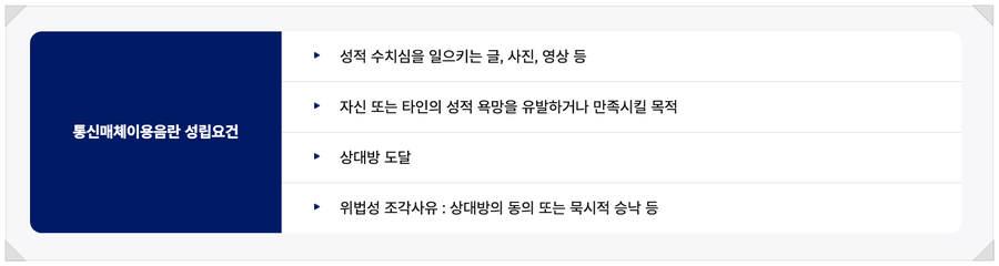 타인을 상대로 자신 혹은 다른 사람의 성적 욕망을 유발하거나 만족시킬 목적을 가지고 통신매체를 바탕으로 사진, 글, 그림, 영상 등을 전달하여 성적 수치심을 느끼게 할 경우