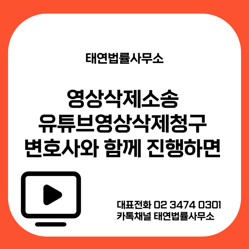 영상삭제 유튜브영상삭제청구를 진행하기 위해서는 유튜브 커뮤니티 플랫폼에 대한 이해도가 필수적입니다. 태연법률사무소는 수 년 동안 유튜브영상삭제청구 유튜브반론통지 유튜브권리침해신고 등 각종 유튜브 소송을 진행하여 해결드리고 있습니다. 유튜브는 워낙 빠르게 전파되는 매체이기 때문에 대처도 신속해야 잘못된 정보를 보다 빨리 바로잡을 수 있습니다. 이때는 유튜브에 대한 이해도가 높은 변호사님과 함께 하셔야 시간 지연 없이 더욱 적절한 방법으로 신속하게 대처할 수 있기 때문에 전문변호사님과 상담을 진행하시는 것이 영상삭제청구 유튜브영상삭제청구를 가장 빠르게 진행할 수 있는 방법입니다.