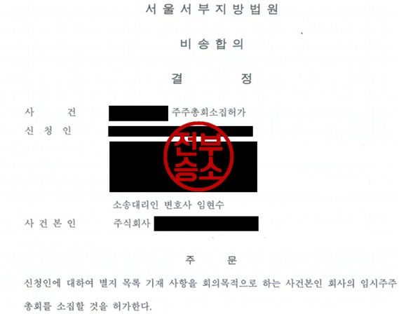 오늘은 이처럼 지분 다수 보유하고도 대표이사의 비협조로 곤경에 처했던 의뢰인을 대리하여, 법원으로부터 대표이사를 해임하는 '임시주주총회 소집허가' 인용 결정을 신속하게 이끌어낸 성공 사례를 소개해 드립니다.