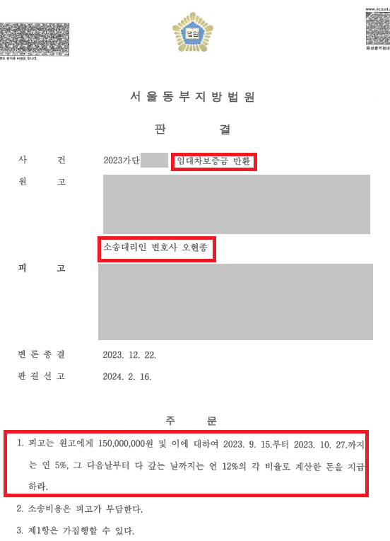 전세보증금 반환 사건에서, 제가 임차인을 대리하여 전부승소한 사건을 소개해 드리려 합니다.