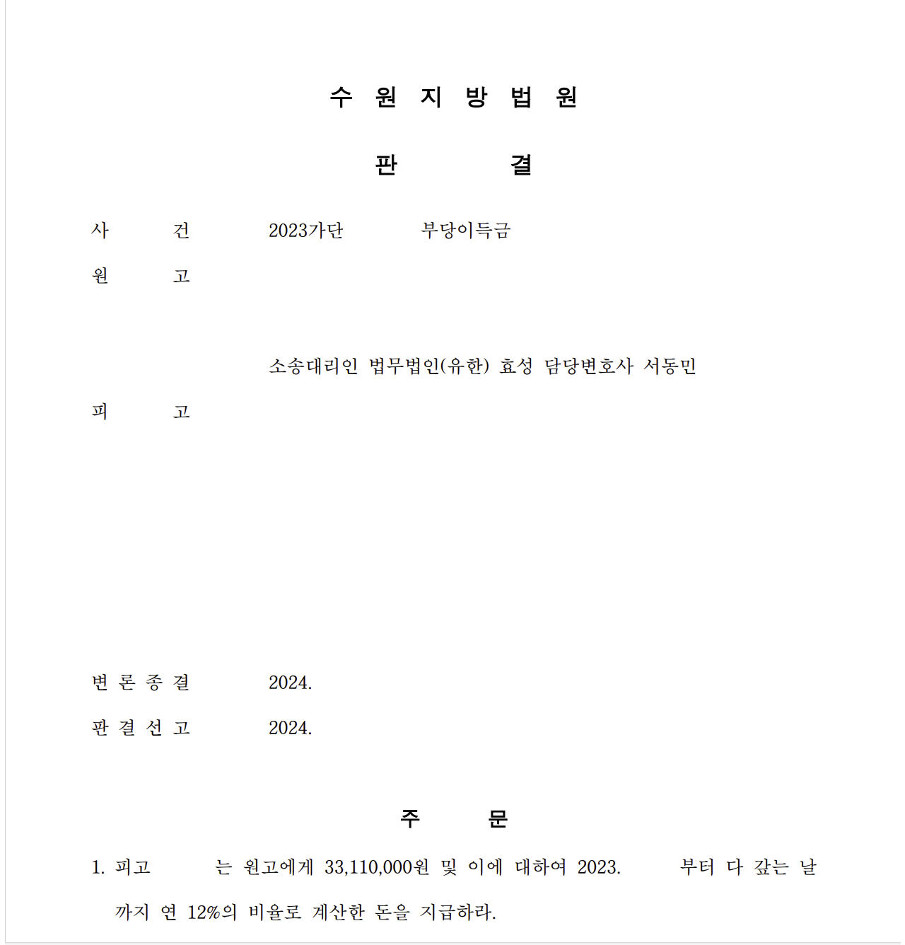 저는 즉각 입금 받은 자를 피고로 하여 민사소송 부당이득반환청구소송을 제기하였고 법원은 원고 승소 판결을 선고하여 의뢰인은 피해액을 반환받았습니다.