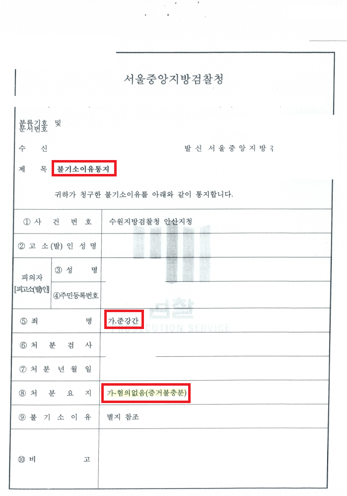 담당 검사는 경찰의 유죄 취지의 기소 의견을 뒤집고, 피의자의 준강간 혐의에 대하여 무혐의 처분을 하였습니다.