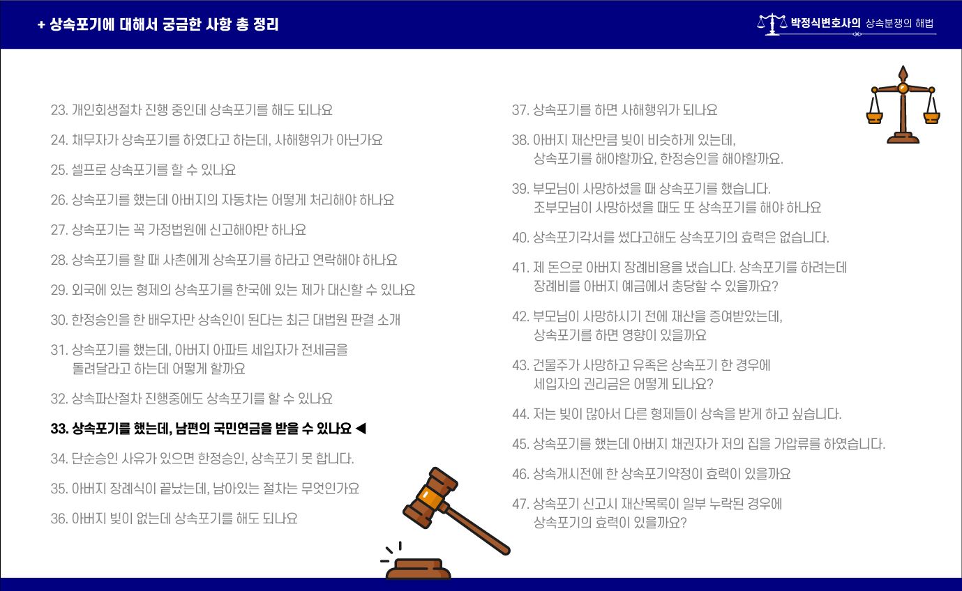 ![[상속포기 EP.33] 상속포기와 남편의 국민연금](/_next/image?url=https%3A%2F%2Fd2ai3ajp99ywjy.cloudfront.net%2Fassets%2Fimages%2Fpost%2Fguide_title.jpg&w=3840&q=75)