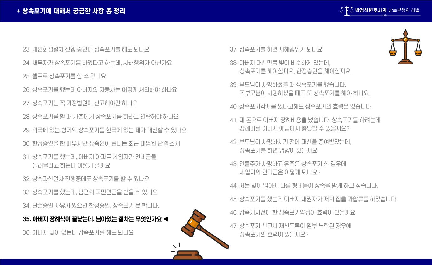 ![[상속포기 EP.35] 아버지 장례식, 남은 절차는?](/_next/image?url=https%3A%2F%2Fd2ai3ajp99ywjy.cloudfront.net%2Fassets%2Fimages%2Fpost%2Fguide_title.jpg&w=3840&q=75)