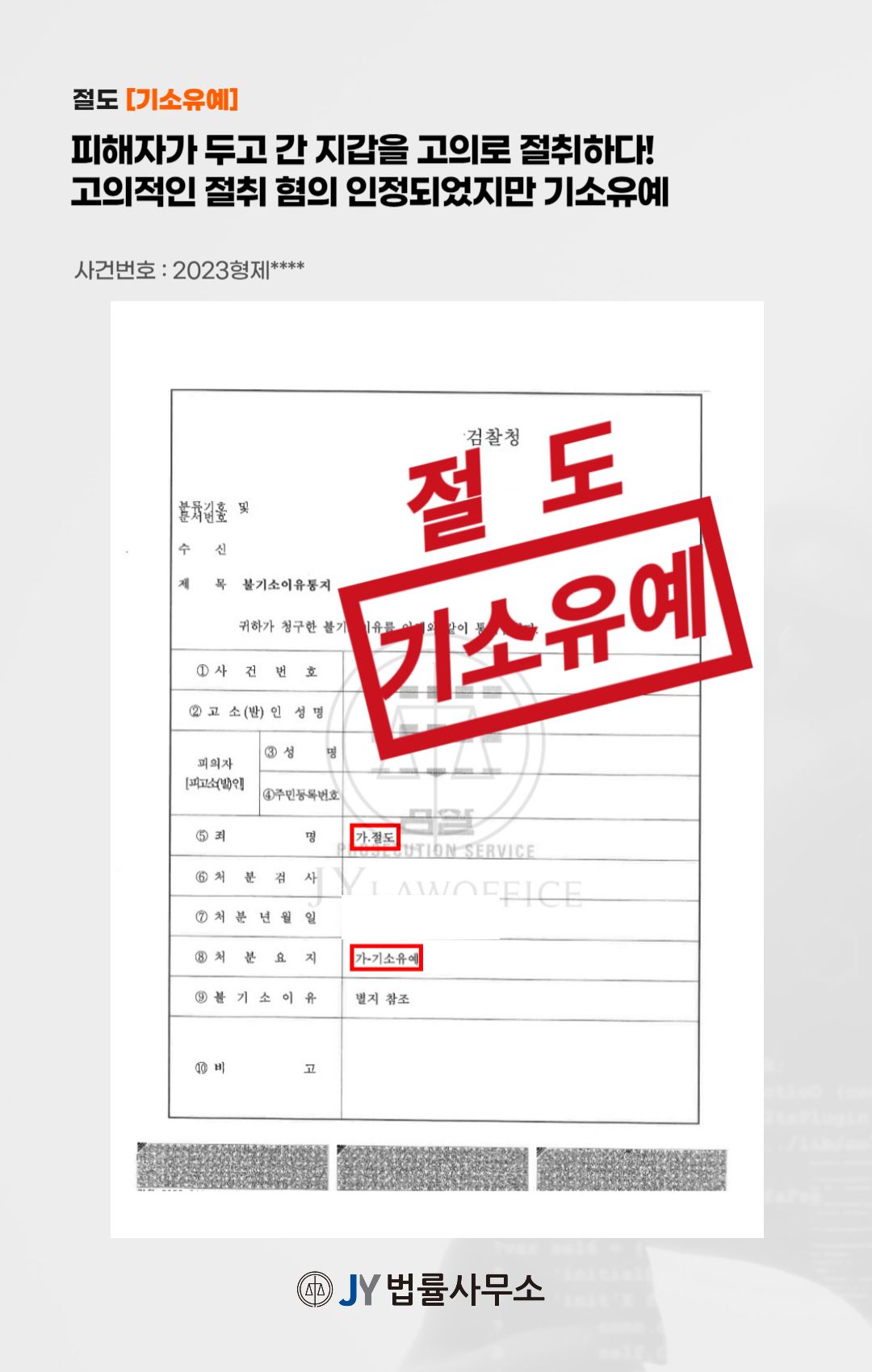 본 사건의 의뢰인은 피해자가 두고 간 지갑을 절취하여 '절도' 혐의가 적용되었으며, 이후 절차에 대해 법리적인 조언을 구하기 위해 본 JY법률사무소를 찾아주셨습니다.