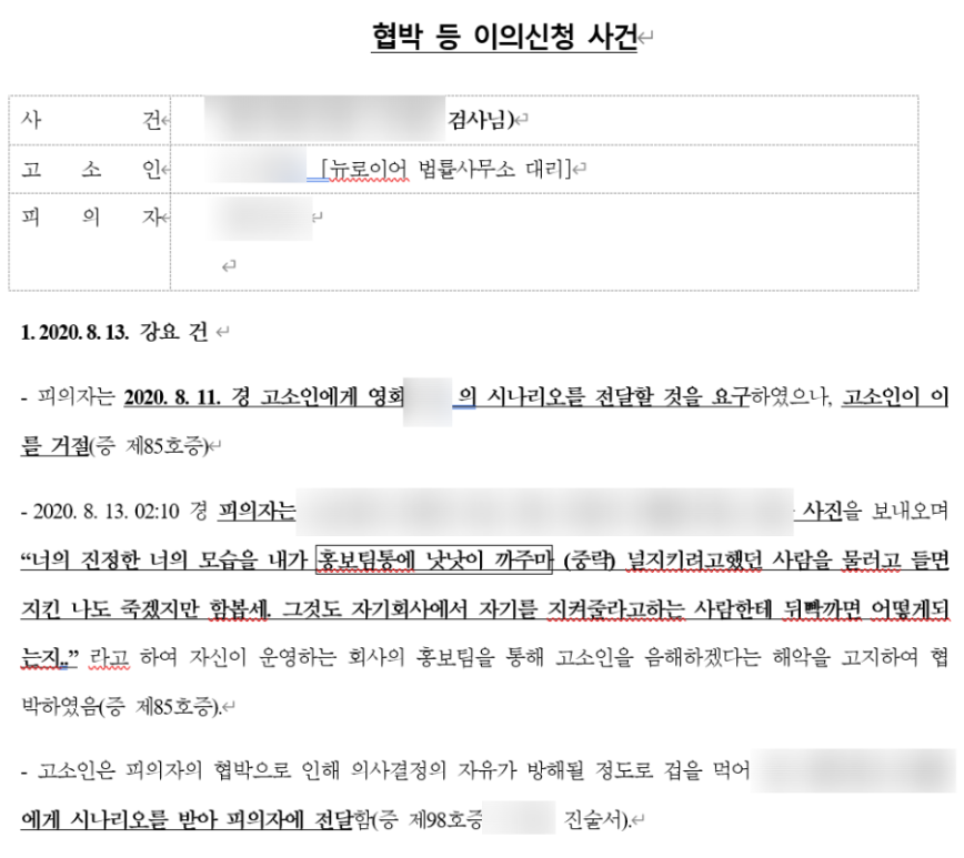 저희가 살펴보니 "왜 고소가 제대로 진행되지 않았는지" 알 수 있었고 협박, 명예훼손은 인정되는 것이 맞다는 판단하에 사건을 수임하게 되었습니다.
