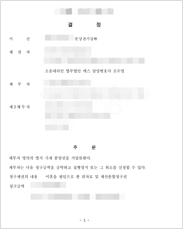 2. 남편명의 분양권에 대한 가압류신청을 하여 단기간에 인용결정을 받음