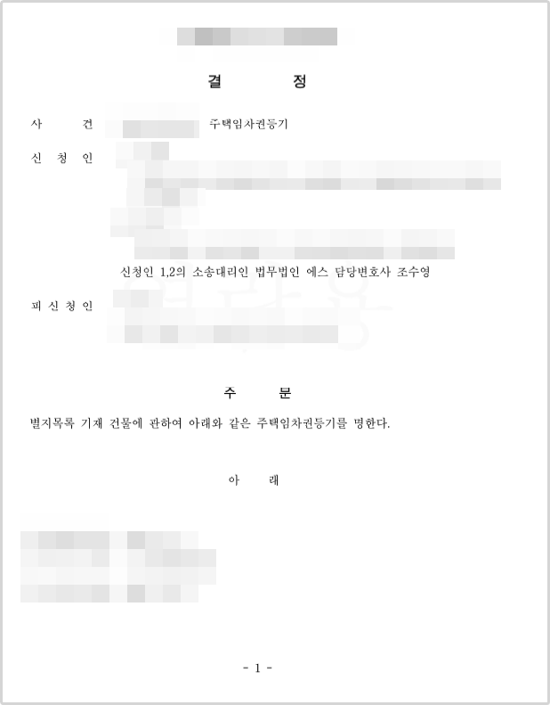 망인의 임대차보증금반환채권을 상속한 건이라, 많은 서류가 필요했고 임차권등기명령을 하는데 다소 시간이 걸렸으나, 다행히 임차권등기명령이 인용되었습니다.