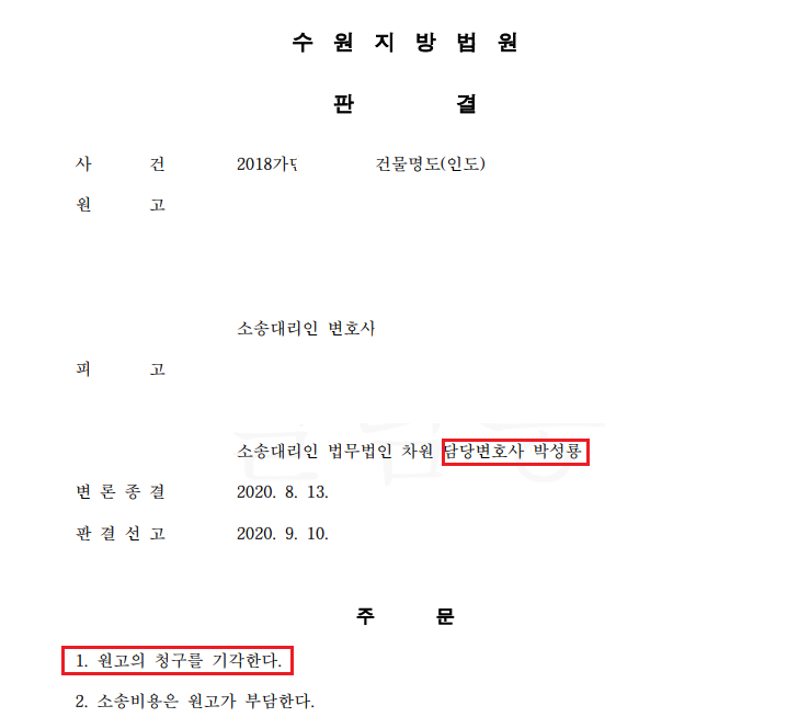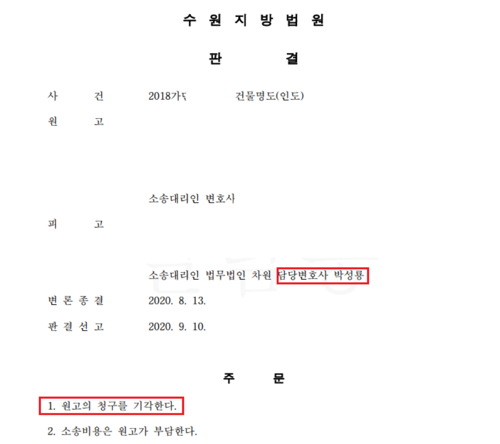 결국 제가 사건을 맡아 소송을 진행하게 되었는데요. 결과는 의뢰인 승소였습니다.