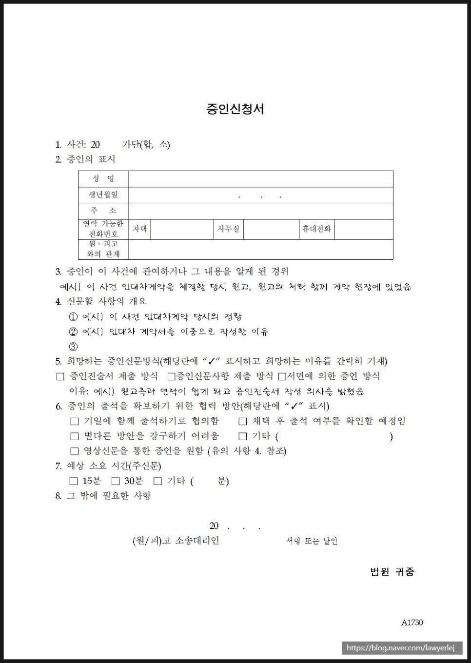 실제 증인신문 시간은 짧게는 20분에서 약 1시간 가량 소요될 수 있는 점을 참고하시기 바랍니다.