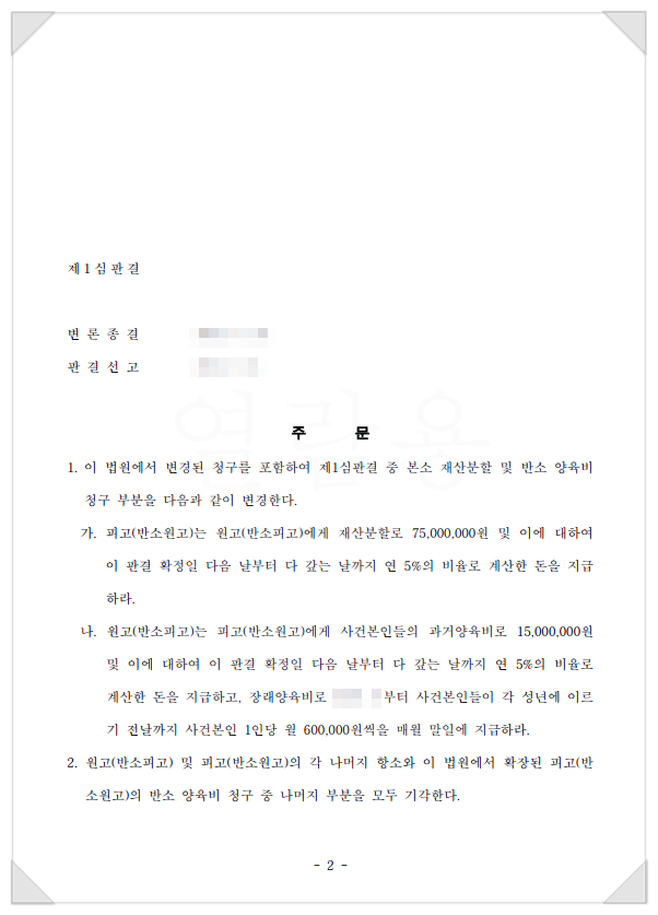 이 사건을 맡은 김은영 변호사는 아내가 의뢰인과 소송 중 동거하고 있었지만 종일 사업을 하고 있어 ➀ 실질적으로 의뢰인이 자녀들을 현재까지 주로 양육하고 있으며, ➁ 아내가 제1심판결 선고 이후 현재까지 제1심에서 결정된 양육비를 의뢰인에게 전혀 지급하지 않은 점, ➂ 아내가 자녀들의 교육비나 공과금 등 공동 생활비조차 부담하지 않았던 점에 대한 객관적인 자료를 확보하여 과거 양육비를 부담하지 않고 있음을 입증했습니다.