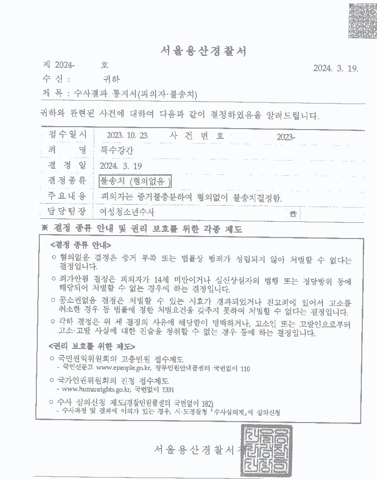 경찰은 불송치 결정을 내렸습니다.