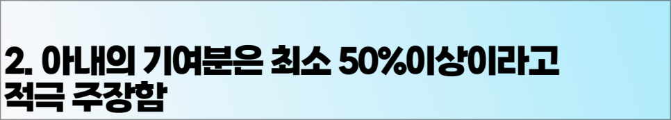 2. 아내의 기여분은 최소 50%이상이라고 적극 주장함